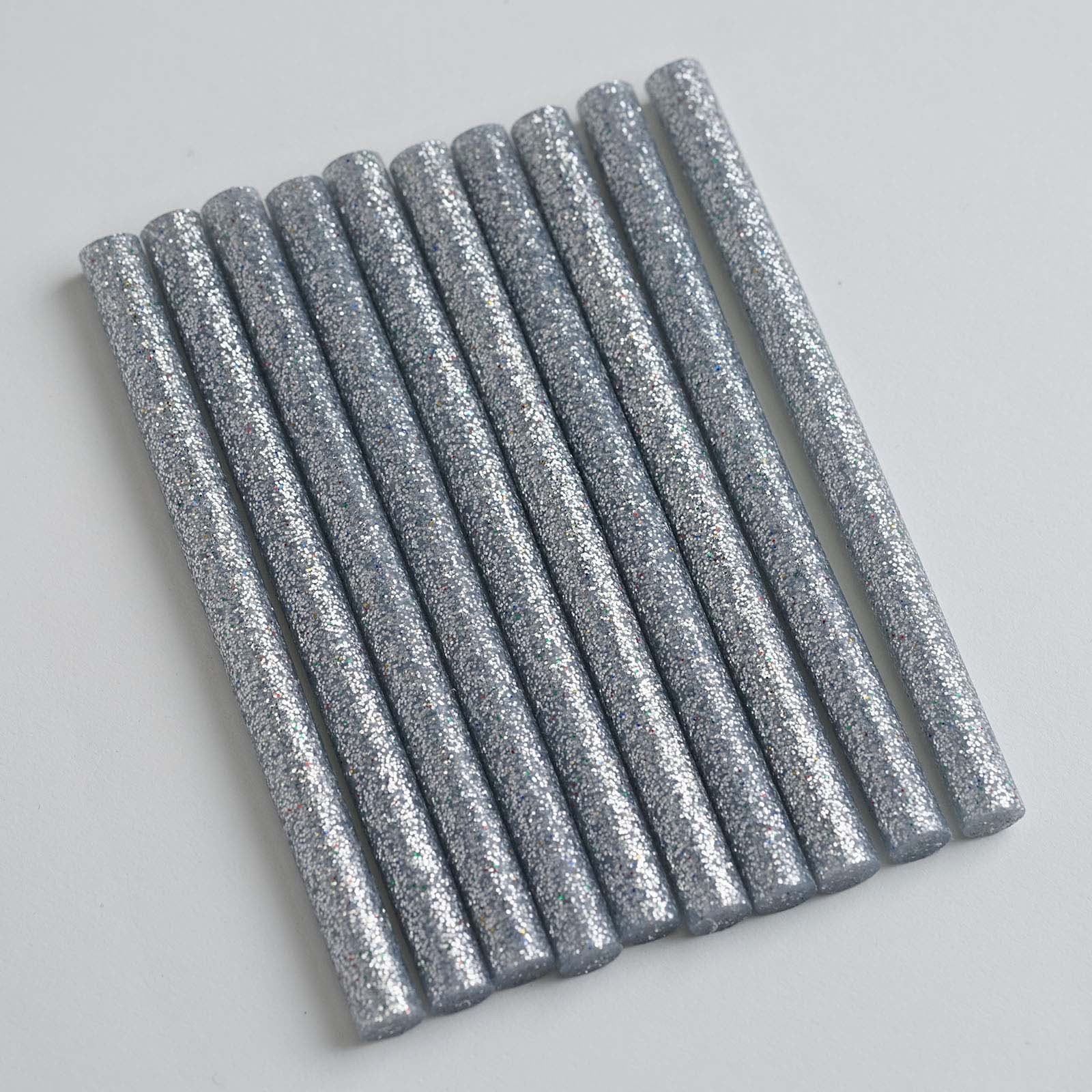 10 pcs Silver Glitter Hot Melt Glue Sticks For DIY Art Craft Sealing Repair Tool - 7mm x 4"