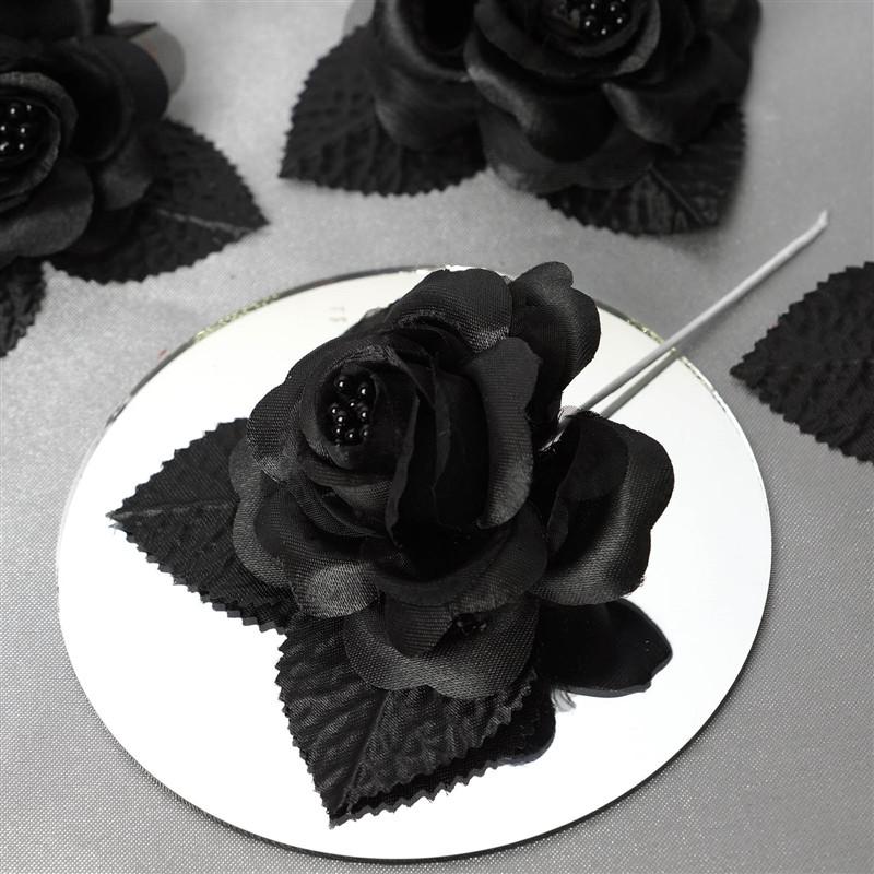 12pcs Black Mini Satin Ribbon Rose Flower Pearl Spray Wedding Appliques Sewing Decor Craft Supplies