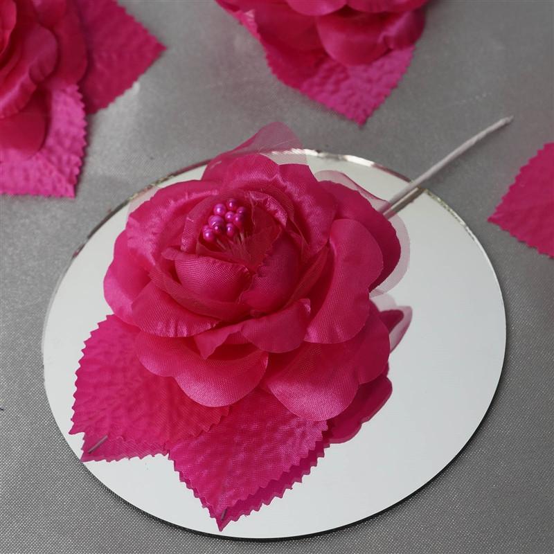 12pcs Fushia Mini Satin Ribbon Rose Flower Pearl Spray Wedding Appliques Sewing Decor Craft Supplies
