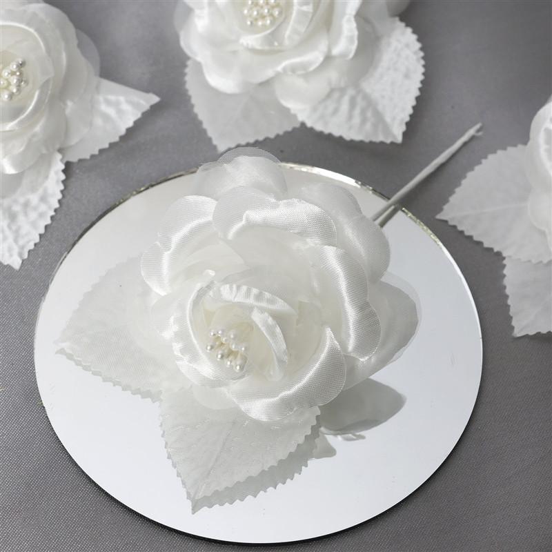 12pcs Ivory Mini Satin Ribbon Rose Flower Pearl Spray Wedding Appliques Sewing Decor Craft Supplies