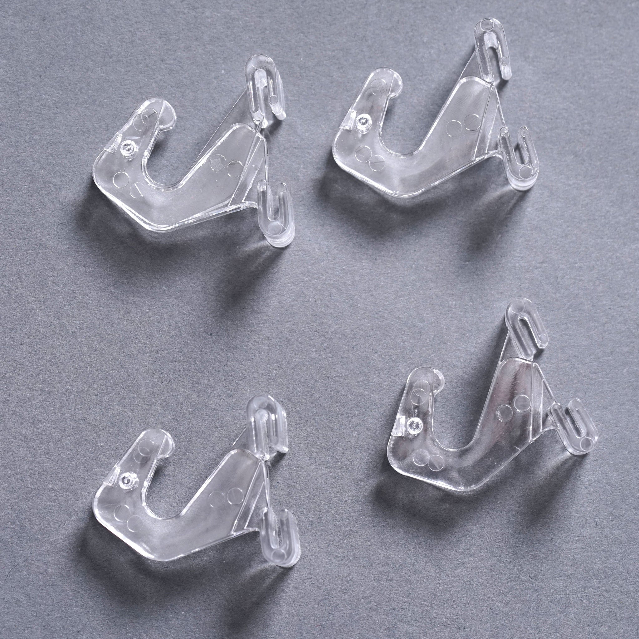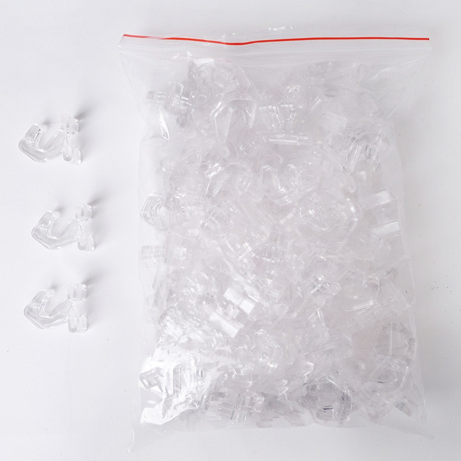- Crystal Clear Hinged Polycarbonate Hooks that swings open to lock securely on the metal support bars of dropped ceilings.
