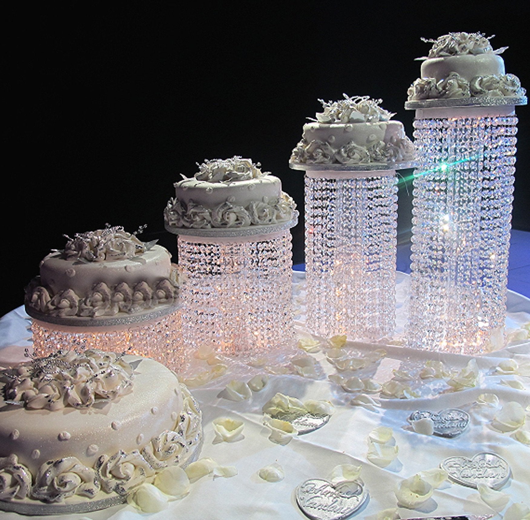 12" Tall Silver Eloquent Crystal Pendants Metal Chandelier Wedding Cake Stand