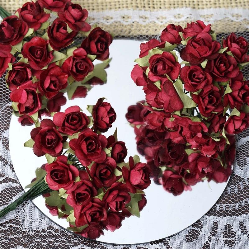 144 Burgundy Paper Mini Flower Roses For DIY Wedding Card Craft Party Favors Decorations