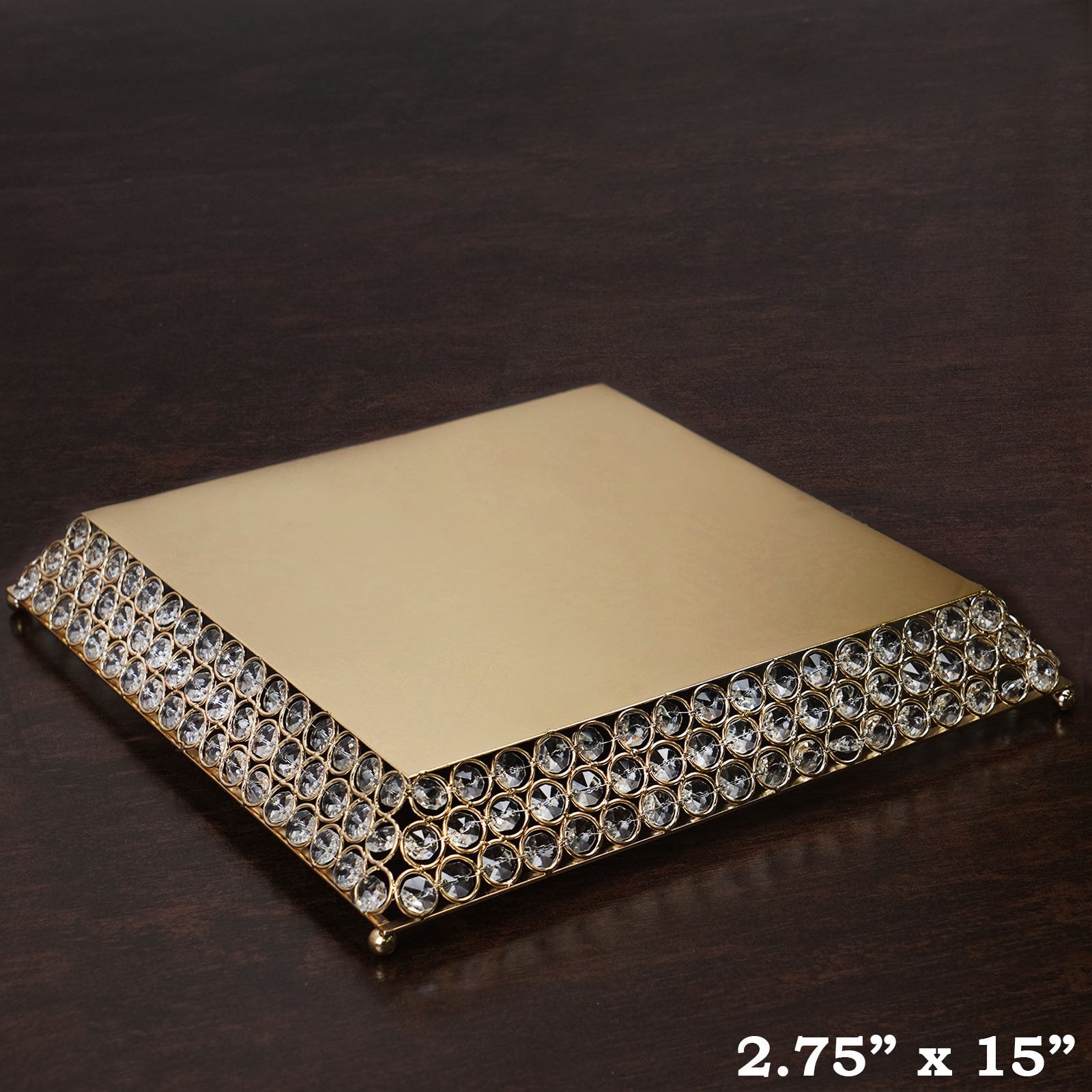 Showcase your opulence and style with this swish emblem of ritz and glitz. Brilliantly fashioned in modish square shape, this metallic chandelier cake stand features a shiny, reflective mirrored metal top surrounded by glinting crystal beads wired fashionably in three rows supported by metallic ball feet for added regal feel. These shiny faceted crystal clear beads will shine like crazy once you throw some lights on this deluxe accessory. Add oodles of glitz and glam to your wedding cake or dessert tables with this imperial beauty. The glistening reflective top will impart a charismatic charm to whatever you place on it; let it be your special Wedding Cake, cupcakes, sweet delicacies or simply candles and garlands, the spectacle produced thereby will be truly magical to behold. Sumptuously display your cake using this dreamy piece or create an eye catching centerpiece by placing it atop your bridal table with LED candles or a bowl of submersible floating candles reflecting enchanting silhouettes all around! Use it as a cake stand or a centerpiece riser, the eloquent elegance exuded by this bling stand will outshine the classiest of decorations. !