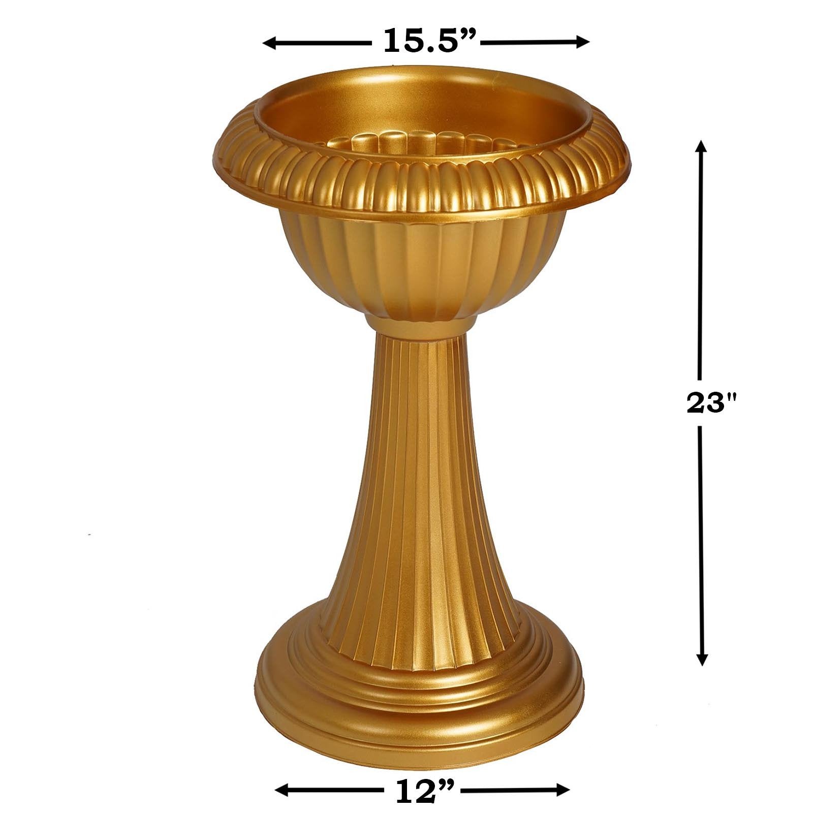 Romans ruled the world for a long time and left unsurpassable assets for the entire world to cherish and benefit from, most important of which being architectural splendidness. Our Roman Inspired Flower Pots are specially designed with high quality plastic to bring the glorious illumination of Roman architecture into your special events, imparting a Grand imperial touch to your decorations. Place natural plants and flowers in these pots or decorate with our disposable garlands, ivies, roses, daisies, Manzanita Trees, ribbons and other accessories to impart a completely enchanting look to your decoration. With magnificent craftsmanship, these pots are surely going to outshine the swankiest of embellishments. Place these pots by your passage way or stage side, reminding of the past, while colorful flowers and plants contrast with them, bringing an innovation of the present time. Rejuvenate your guests spirits and festive mood with these pretty pots bedazzling them with their exultant radiance!