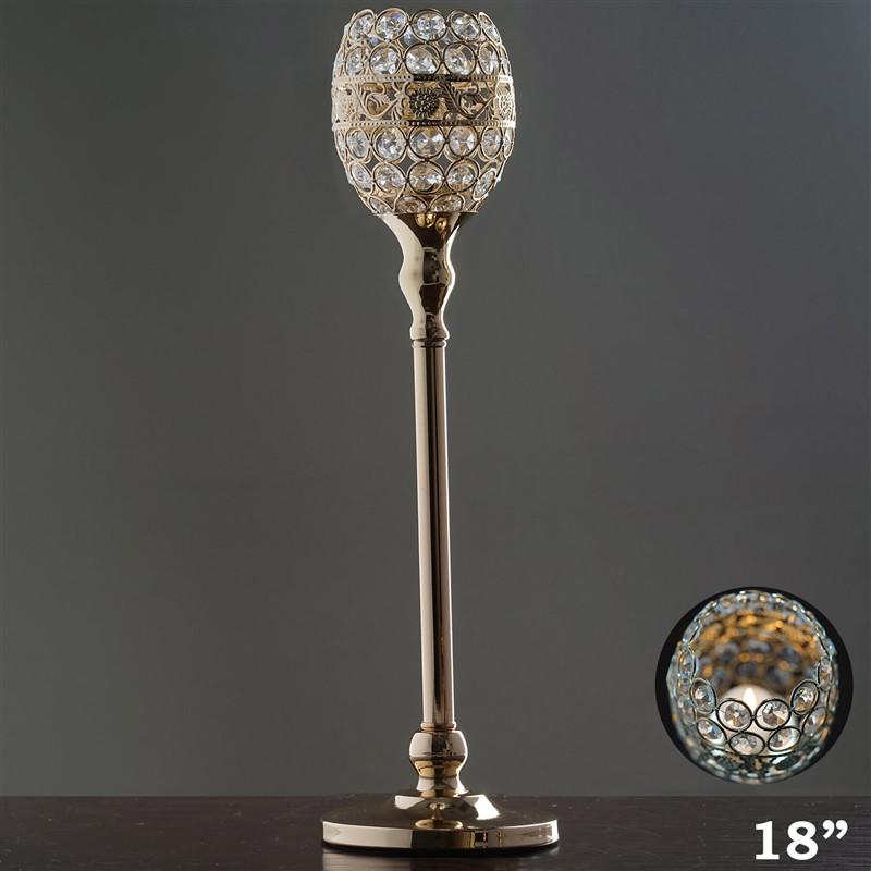18" Tall Crystal Beaded Candle Holder Goblet Votive Tealight Wedding Chandelier Centerpiece - Gold - BUY ONE GET ONE FREE