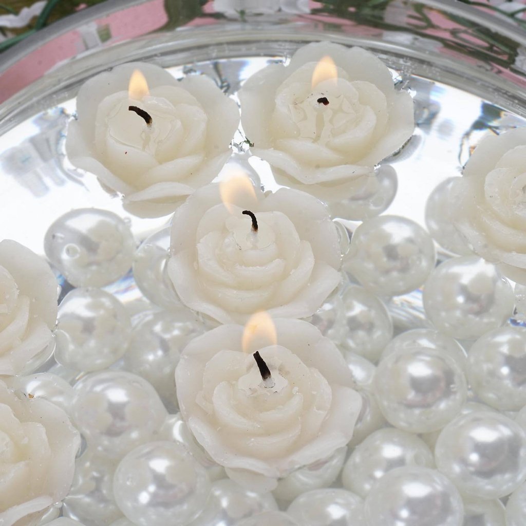 12 PCS Ivory Rose Mini Floating Candles Wedding Birthday Party Centerpiece Decor