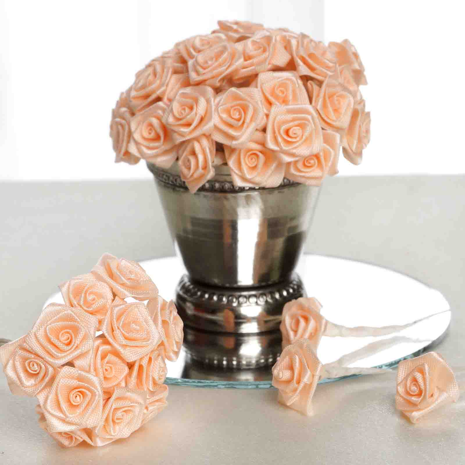 144 Artificial Peach Satin Rose Bud DIY Craft Flower Applique Brooch