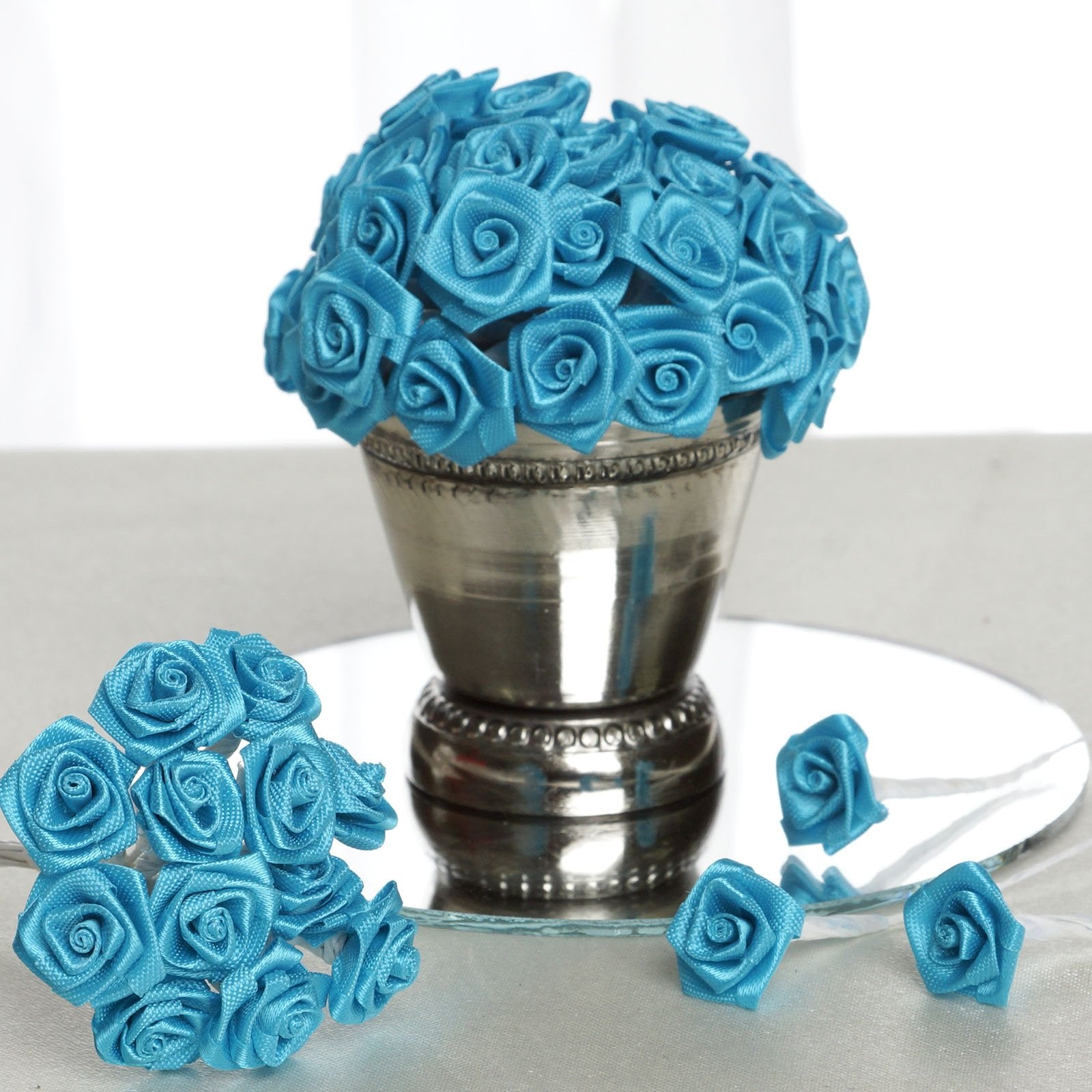 144 Artificial Turquoise Satin Rose Bud DIY Craft Flower Applique Brooch